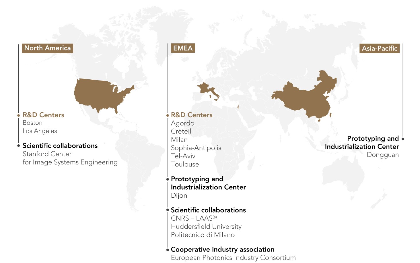 エシロールルックスオティカの原点に根ざした先駆的な思考は、当社の戦略的な焦点であり、決定的な競争優位性をもたらしています。現在、米国、ヨーロッパ、アジア太平洋地域に研究開発拠点を展開し、研究者、経験豊富な技術者やデザイナーで構成されるグローバルコミュニティが、エシロールルックスオティカをメドテック(医療技術)、イノベーション、そして成長のラボラトリーとするために取り組んでいます。このグローバルネットワークにより、地域ごとの消費者ニーズと市場構造を的確に把握し、現地のエンジニアリングやオペレーションとの近接性を活かしてイノベーション能力を高め、業界をリードする大学や研究機関などとの戦略的パートナーシップを促進することが可能になります。